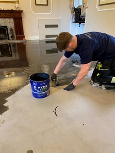 The project also carried time pressures, as the refurbished space was needed for a wedding that had already been booked. The contractor required a reliable technical solution that would address the moisture issues, encapsulate the bitumen residue, and create a stable substrate for luxury vinyl tile installation - all within a tight timeframe.